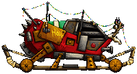 Whoa ho! This bright red slay machine (rumor has it that it isn't paint, but the blood of its victims) has its origins shrouded in lore. Repossessed from some crazy old man who claimed to live at the North Pile, the Slay was modified by an unknown mechanic and sold at auction. Now you will have the opportunity to drop this beastie onto the rooftops of unsuspecting enemy crafts and deliver some serious season's beatings.
